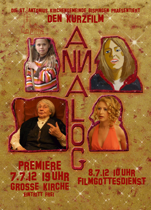 17.5.12: Die Dreharbeiten sind abgeschlossen. Es war viel Arbeit, doch das Ergenbis kann sich sehen lassen. Nun stehen noch Nachvertonungen und Musikeinsoielungen an. Und dann... 7.7. 19Uhr Premiere in St. Antonius und am 8.7. 10 Uhr Filmgottesdienst.